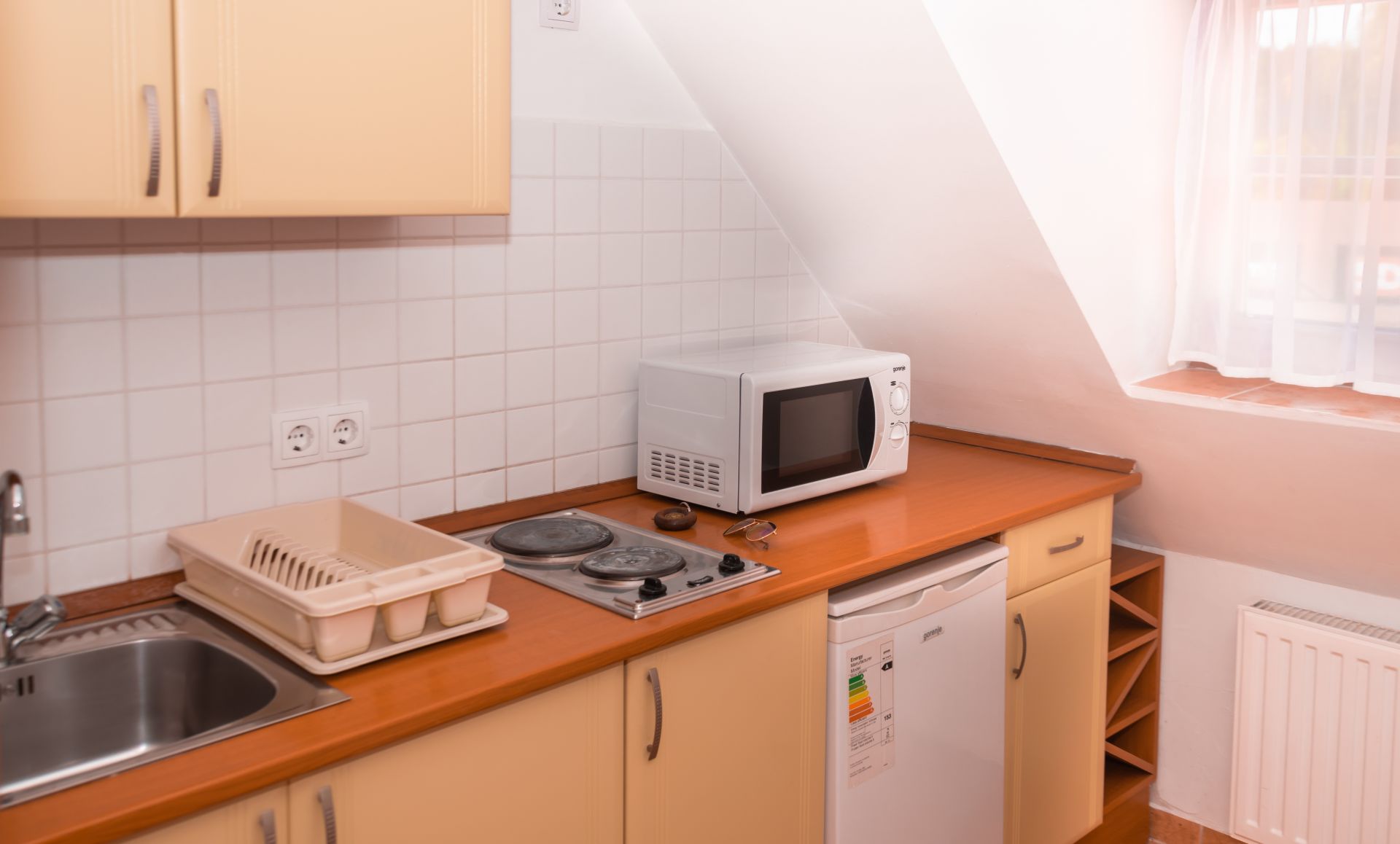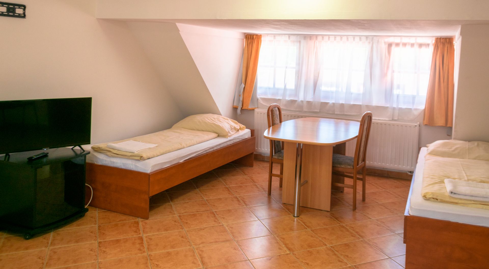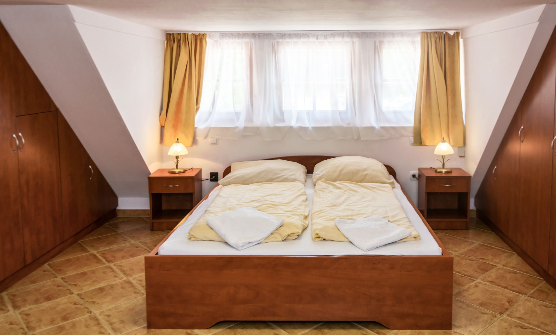 Az apartman stúdió jellegű. Előtér, fürdőszoba - mosdó, zuhanyzó; nappali- konyha egy légtérben Az apartman alapterülete: 30 m2 Felszereltség: teljes felszereltségű konyha (elektromos tűzhely, mikró, tányérok, poharak, evőeszközök állnak rendelkezésre), 4 db ágy (+ 1 pótágy lehetőséggel) Az apartmanokban paplan, párna, ágynemű, törölköző rendelkezésre áll.